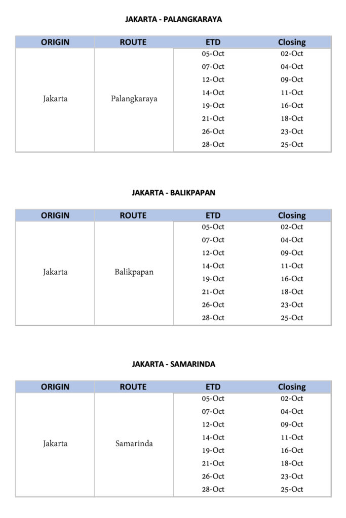 01/10/2021 01/10/2021 / By Yamtono Sardi / Business • Cargo • Delivery • Development • Logistics • Moving • News • Shipping • Tracking • Transport • Trucking/ 0 Comments Schedule Kapal Bulan Oktober 2021 Schedule Kapal PT LJR Oktober 21 (1)ScheduleKapalBulanOktober2021 Views: 1,117 Share this:TweetMoreTelegramWhatsAppLike this:Like Loading... Terkait Write a Comment Cancel replyYour email address will not be published. Required fields are marked *Your comment*First and Last name* E-mail Address* Website Save my name, email, and website in this browser for the next time I comment. Google reCAPTCHA Form Komentar Nama Email Komentar Kirim Captcha Tidak ValidOhh sorry, you're not human (Anda bukan manusia)Silahkan klik kotak I'm not robot (reCaptcha) untuk verifikasi